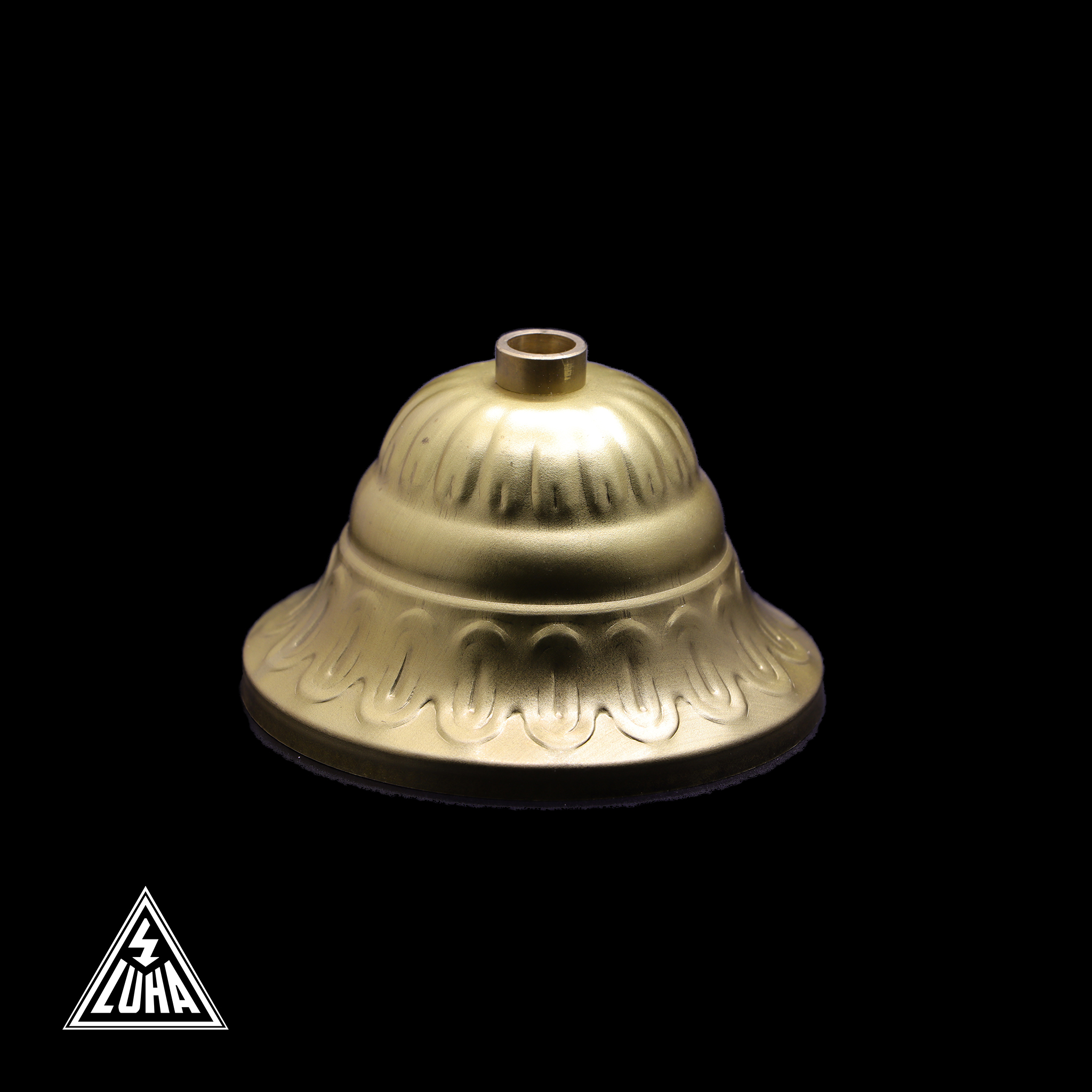 Dekorativní kovový baldachýn v matném mosazném provedení s jemným ornamentálním vzorem, určený k estetickému zakrytí elektroinstalace u stropních i nástěnných svítidel. Tlumený mosazný povrch v kombinaci s ornamentem dodává svítidlu elegantní, nadčasový charakter a hodí se do klasických, vintage i stylových moderních interiérů.