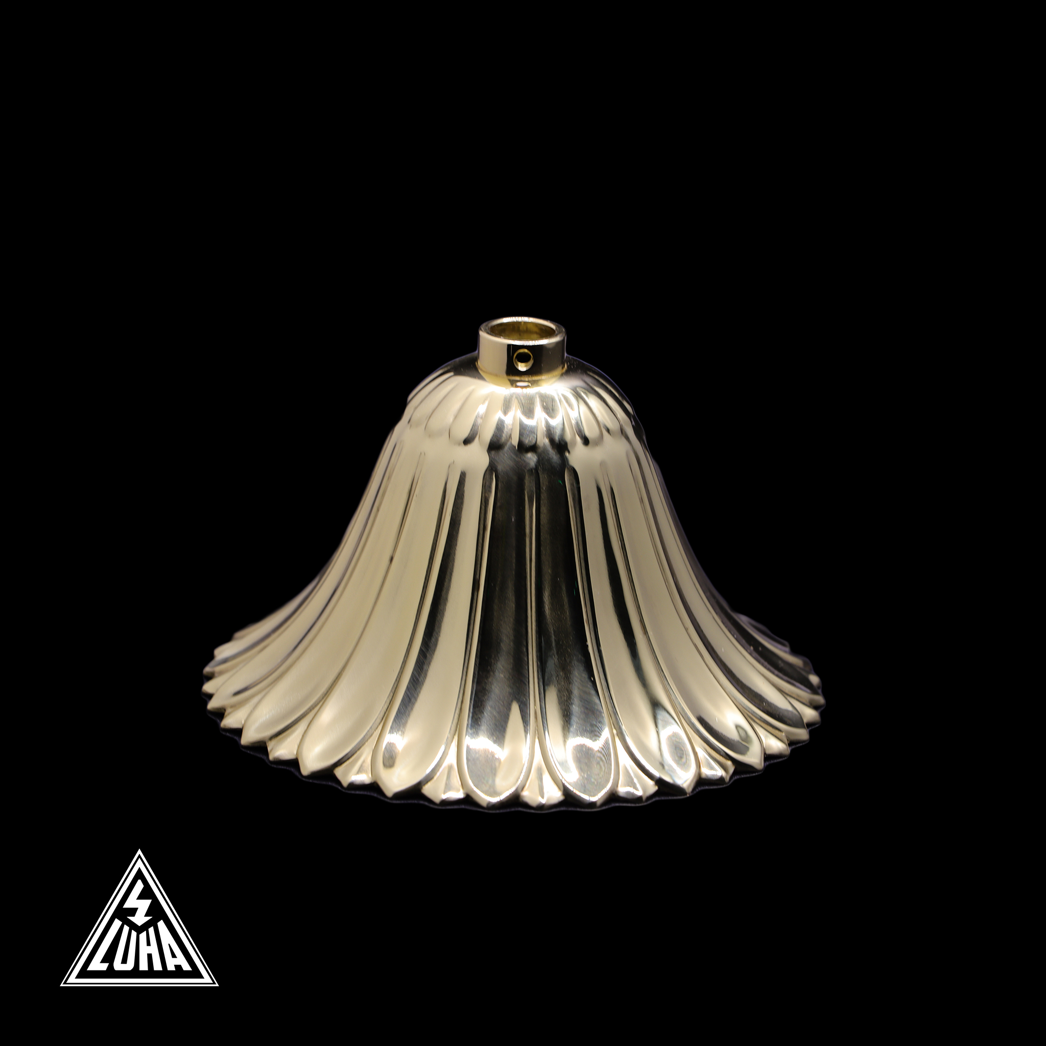 Dekorativní kovový baldachýn v mosazném provedení s reliéfem listů, určený k zakrytí elektroinstalace u stropních a nástěnných svítidel. Bohatý ornament dodává svítidlu výrazný charakter a hodí se zejména do klasických, vintage či art-deco interiérů.